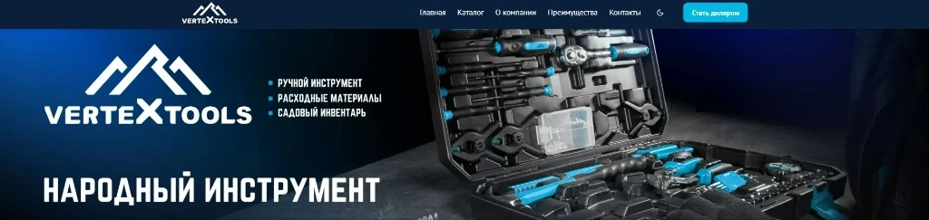 Статический сайт-витрина: React, TypeScript, Vite. Тема — инструменты и расходники.